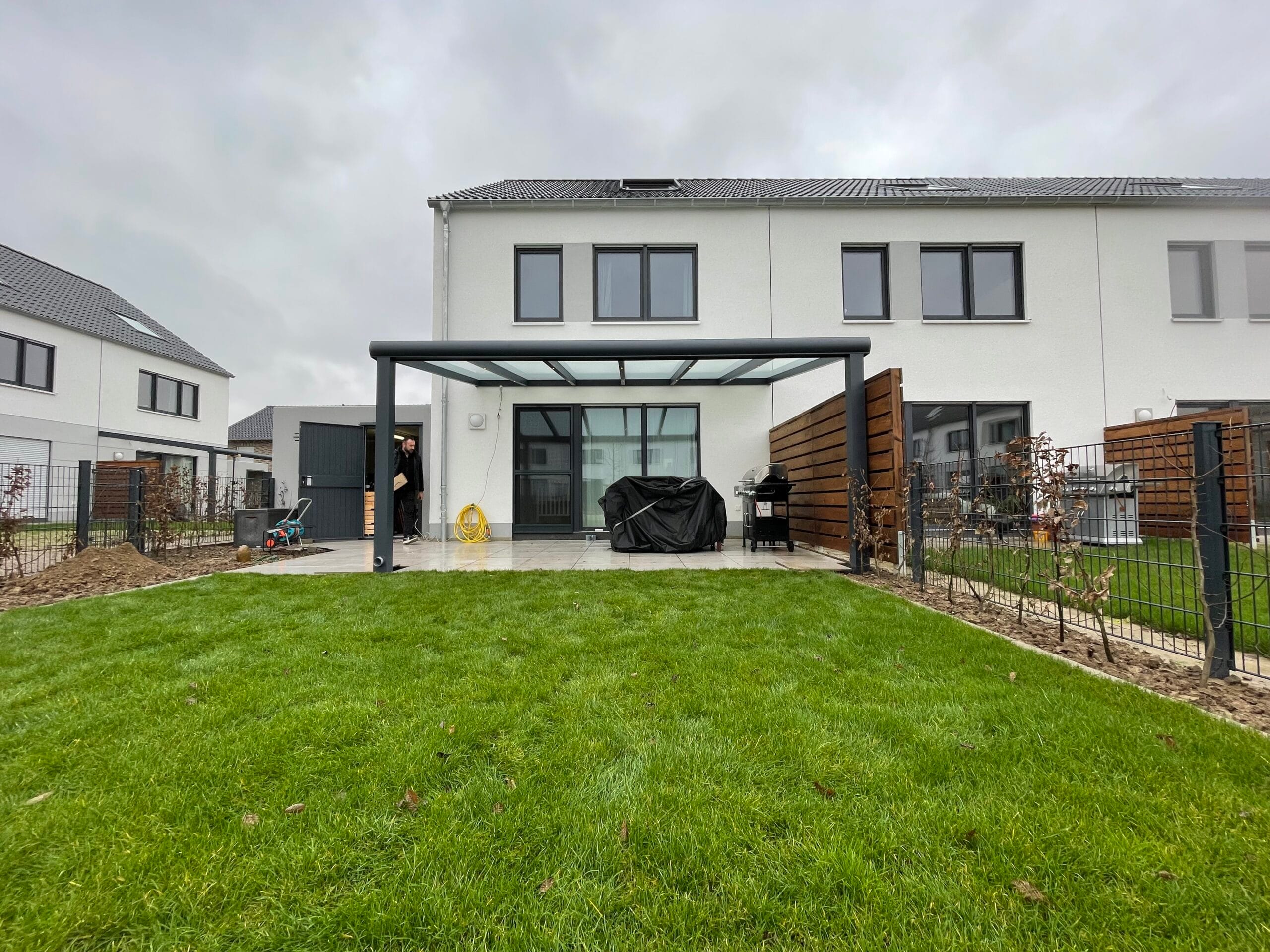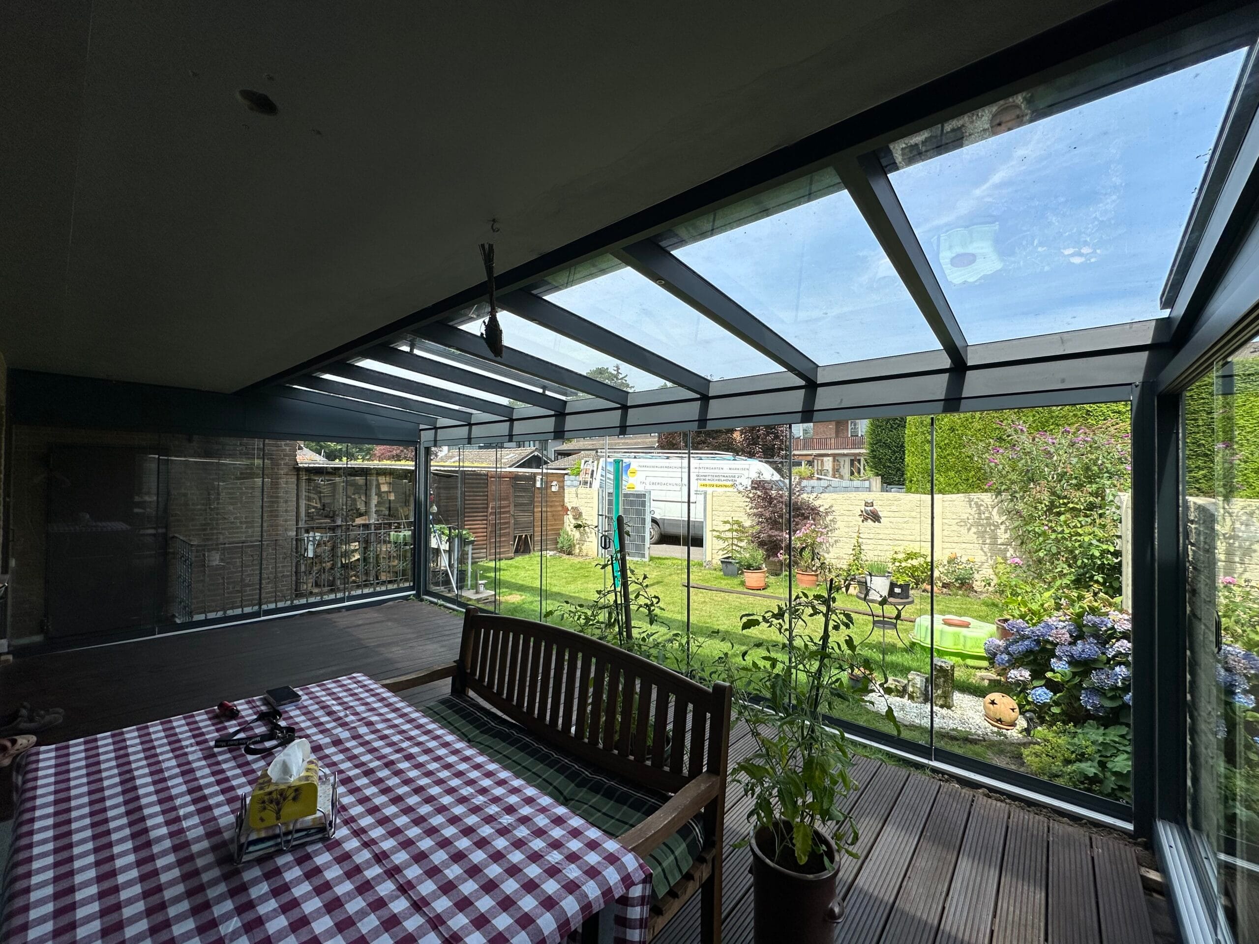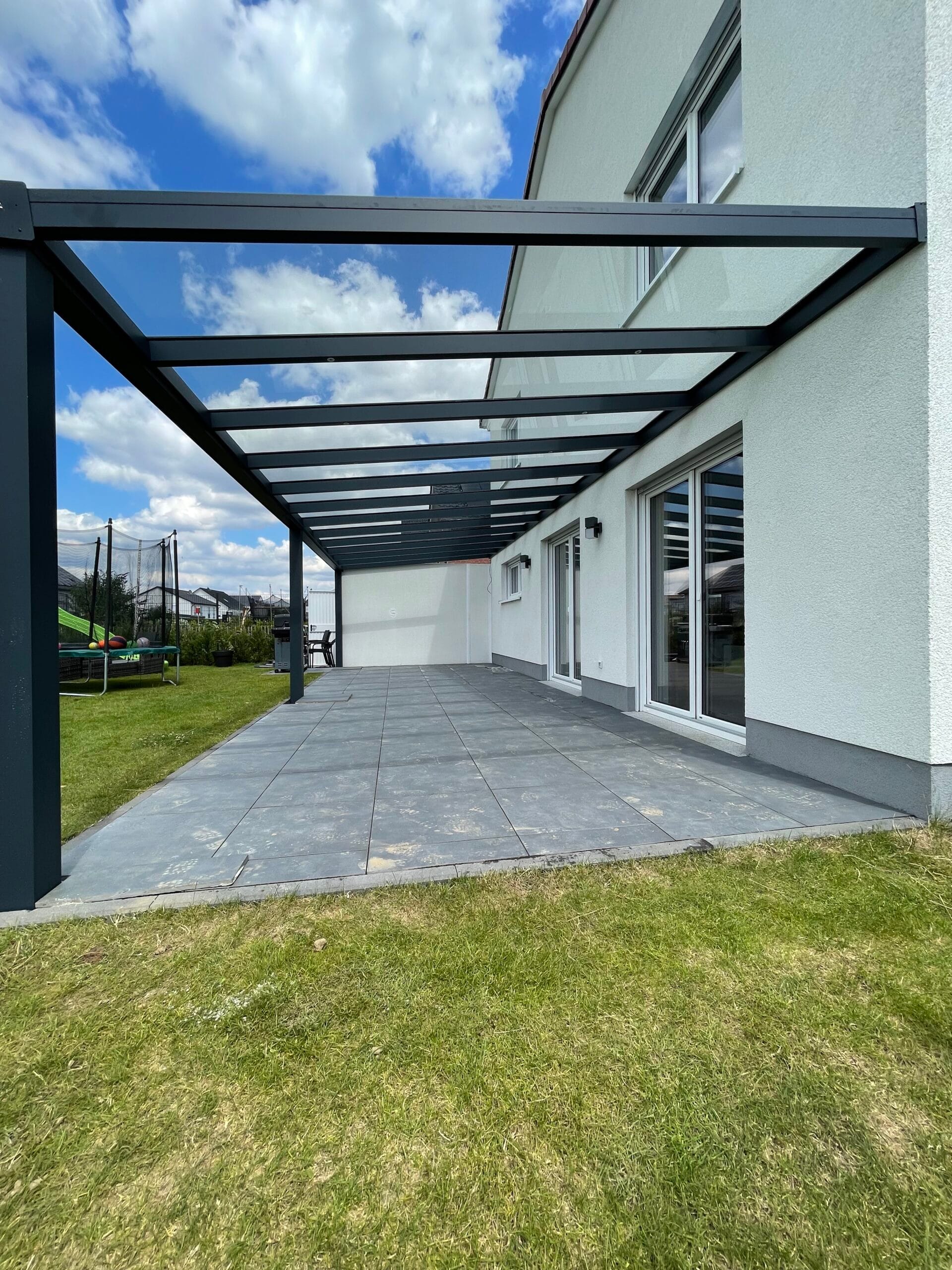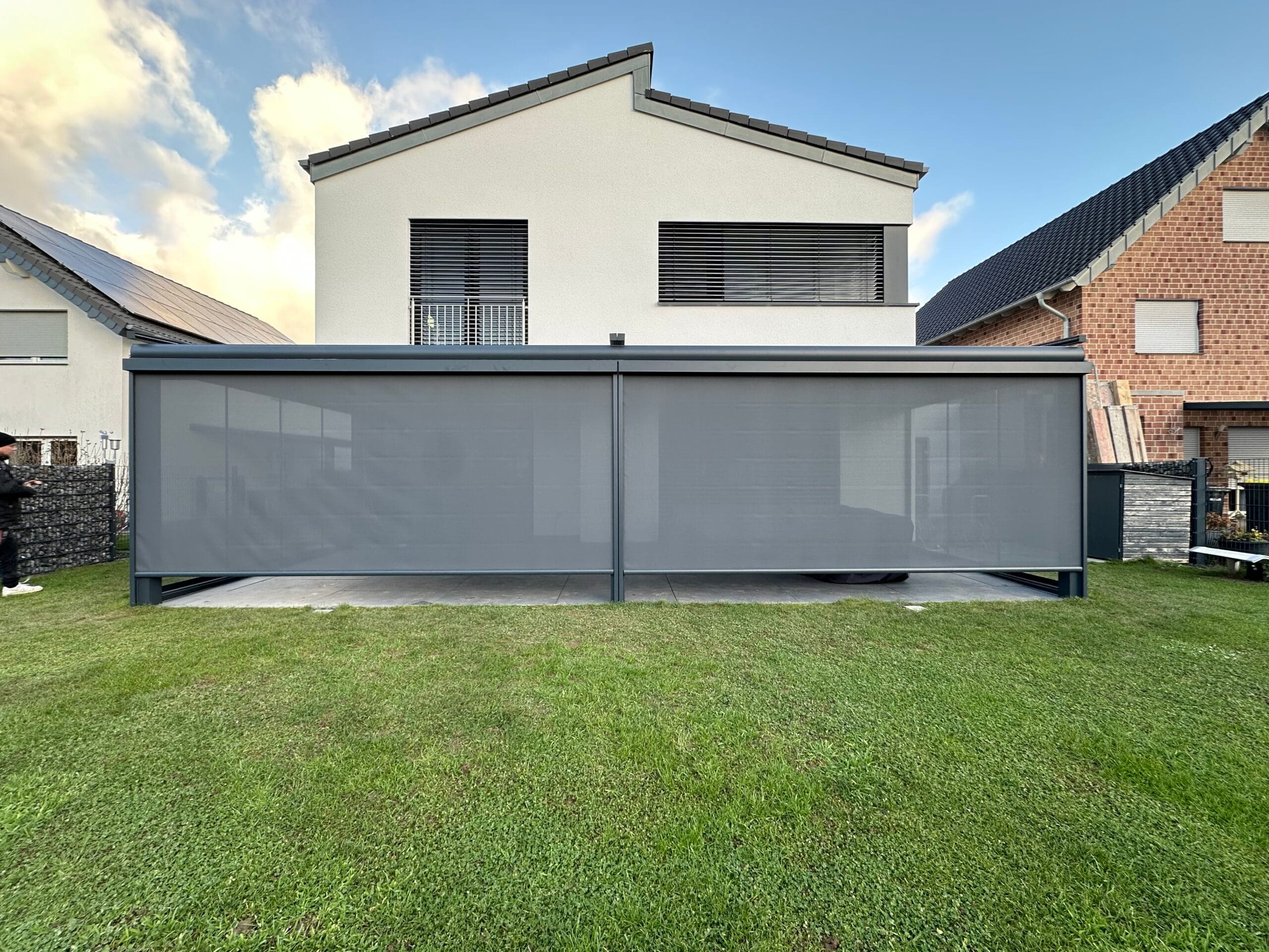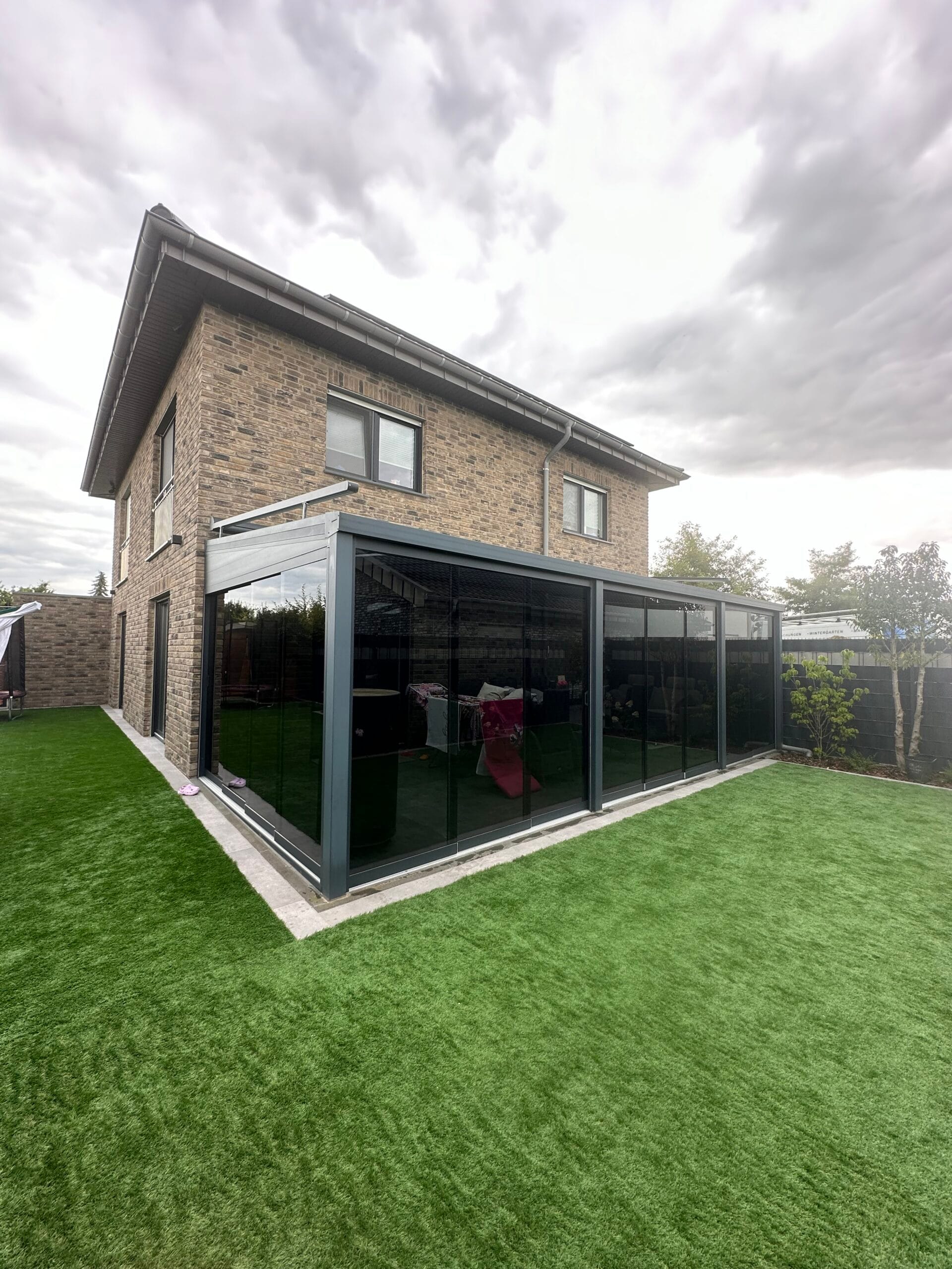 Wählen Sie aus verschiedenen Farben der Profile, die auf Ihre Terrassenüberdachungen abgestimmt sind. Das Glas ist in klar, satiniert oder verdunkelt erhältlich. Unsere hochqualitativen Schienenprofile sind geräuscharm und stoppen Zugluft durch innovative Bürstenprofile. Unregelmäßigkeiten im Boden lassen sich durch Unterlegprofile und Streifenfundamente problemlos ausgleichen, was zu einem reibungslos laufenden System führt